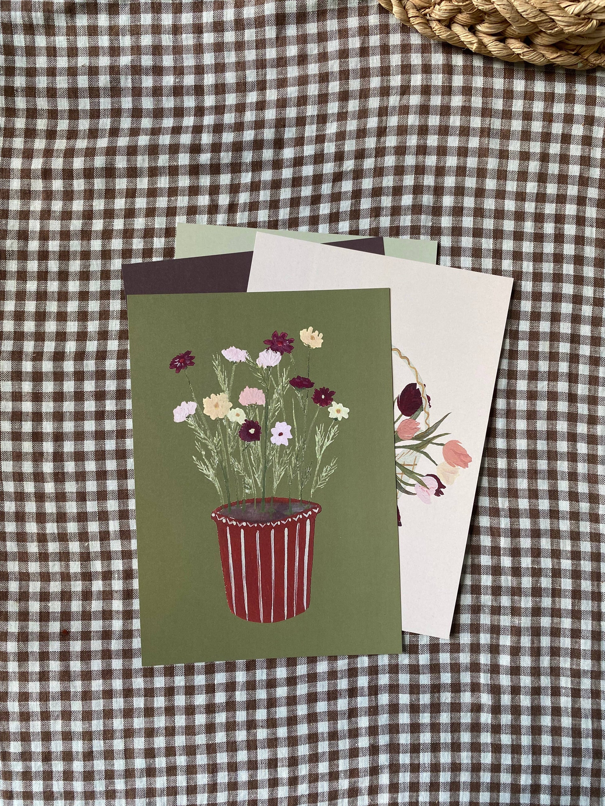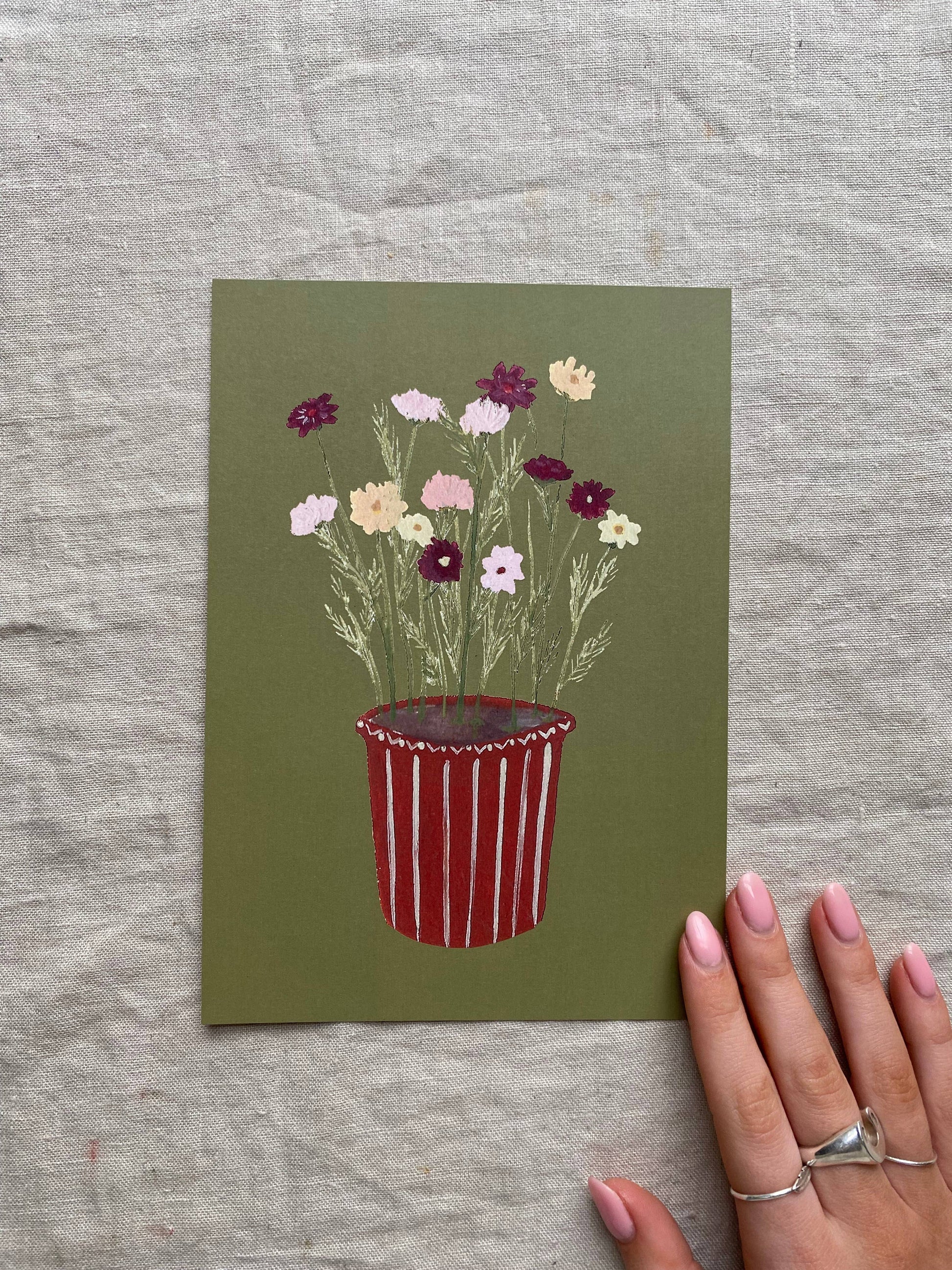 Hand painted in Gouache, and printed in England on textured part recycled paper at 300gsm.