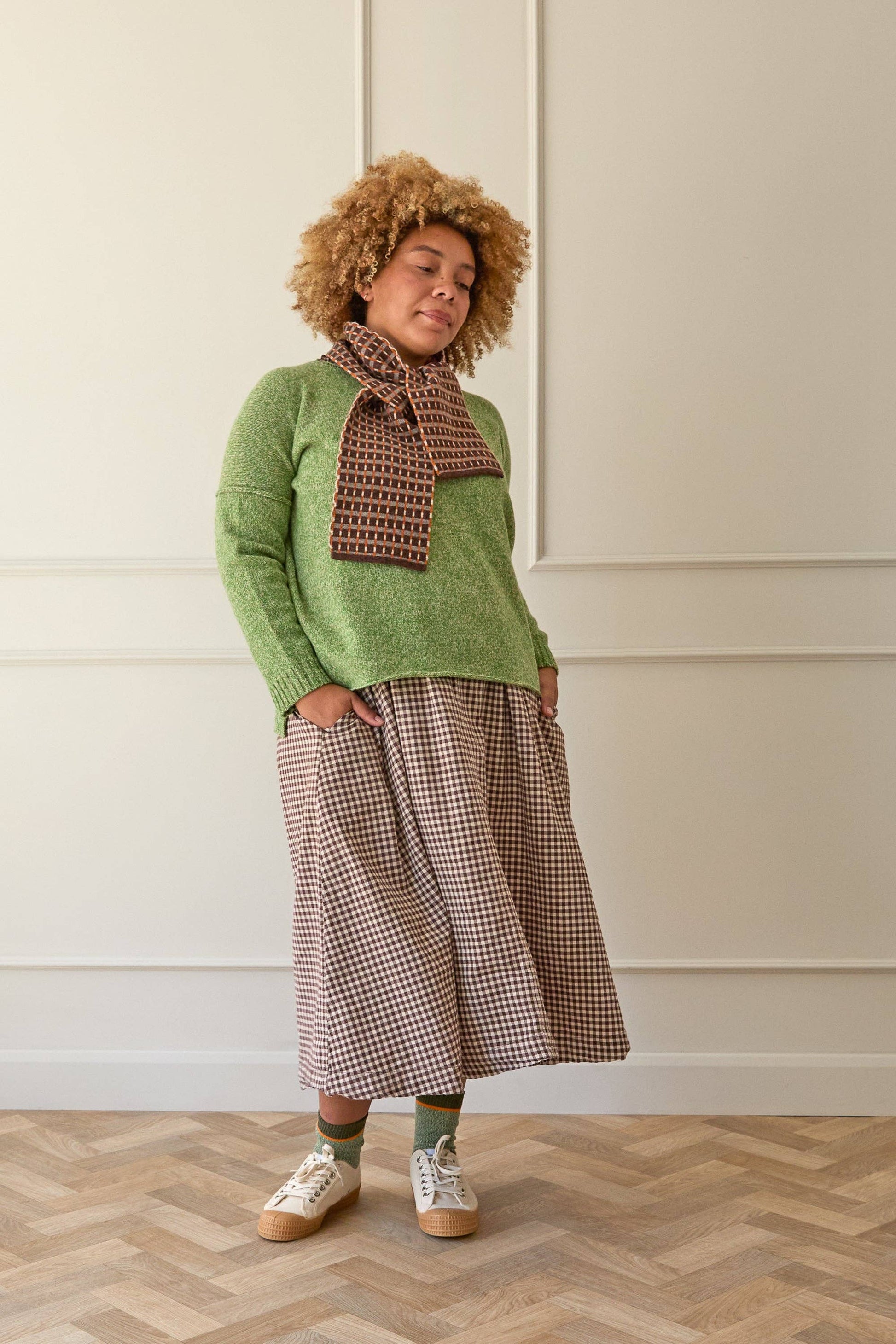 This soft, woollen scarf features a captivating pattern inspired by traditional Japanese mending stitches, the process known as 'Boro' was historically used to extend the lifespan of clothing and textiles. This colour way features, Dark Brown, Mole, Orange and Light Grey. The scarf's reversible design showcases the inverse colours on the other side, providing you with two unique looks in one. Crafted with care, this neat little scarf boasts a double thickness knit, ensuring exceptional warmth whilst still small enough to fit under your collar. It's the perfect companion for braving the elements. Its timeless appeal and unisex design make it a must-have accessory for anyone seeking a blend of fashion and functionality. Materials: 100% Merino Lambs wool, spun in Yorkshire. Our wool is ethically sourced from farms that do not practise mulesing.