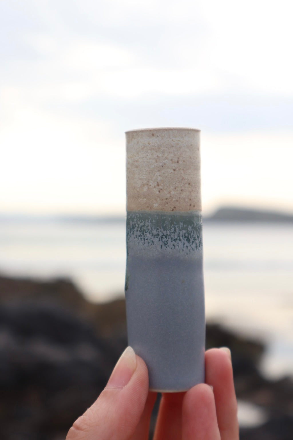 Lovely little bud vase perfect for a single stem flower, every one slightly differs from the next. All handmade on the East Coast of Scotland.